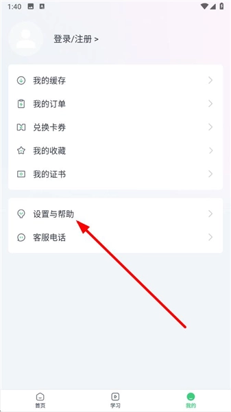 2、在个人界面里,找到并点击设置与帮助选项,进入设置页面。