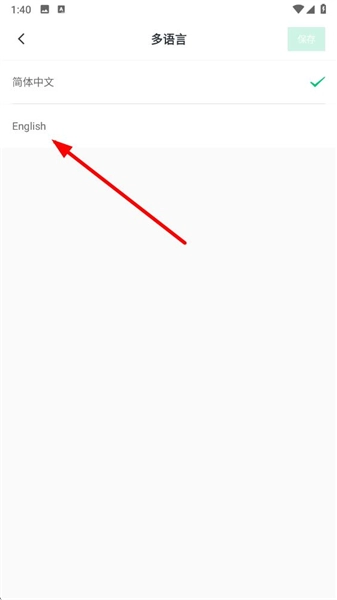 4、在语言选择界面里,点击English选项,即可将哎呀音乐切换为英文模式。