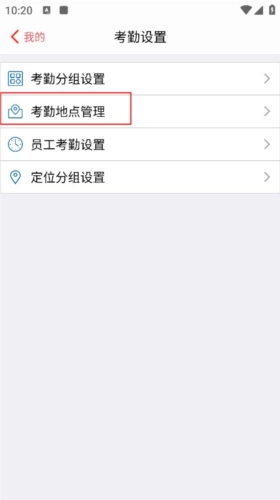 2、接着点击考勤地点管理;