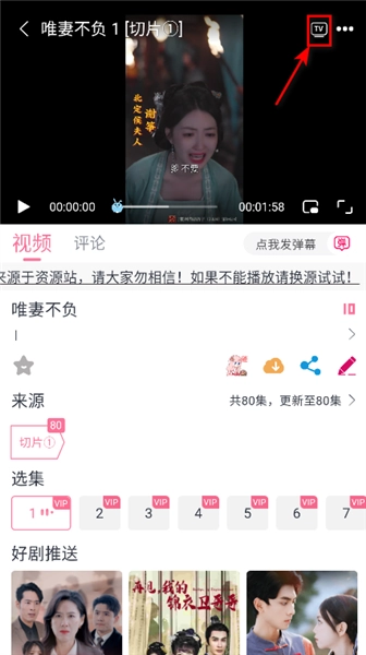 1.进入视频,点击上方的tv按钮