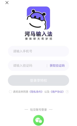 用户在本站下载河马输入法并打开软件后,可点击右下角的“我的”,再点击上方的“登录”按钮,就能通过手机号完成登录操作。