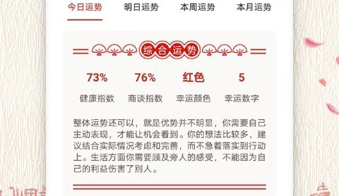 2、【流日功能】依据用户的生辰信息,推算其当日的个人神煞情况,进而推断出当日的意相,并针对各方面事宜给出相应建议!