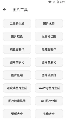 3、图片相关工具:包含二维码生成、图片水印添加、图片转文字、GIF图拆分、壁纸汇总、头像集合等功能。