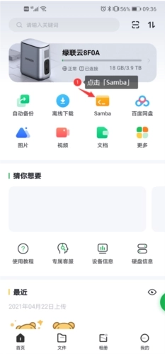 1、启动绿联云应用,进入首页后,找到并点击【Samba】选项。