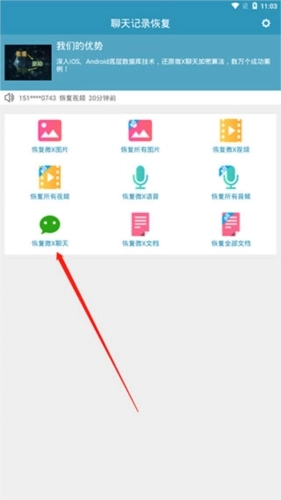 1、首先打开微信聊天记录恢复软件,选择所需的微信聊天记录恢复功能。