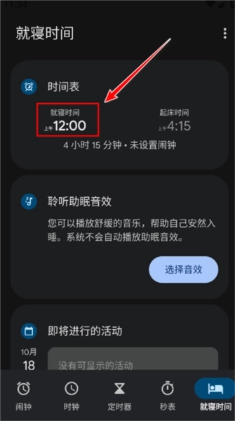 1.打开谷歌时钟,点击右下角的就寝时间。