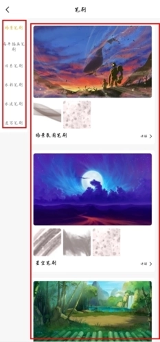 2.在这里能看到各式各样不同类型与风格的笔刷,大家根据自身需求领取就好。