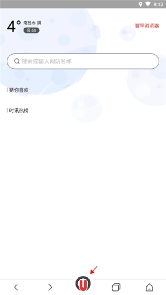 1、打开浏览器,进入主页,然后点击最下面中间的u。