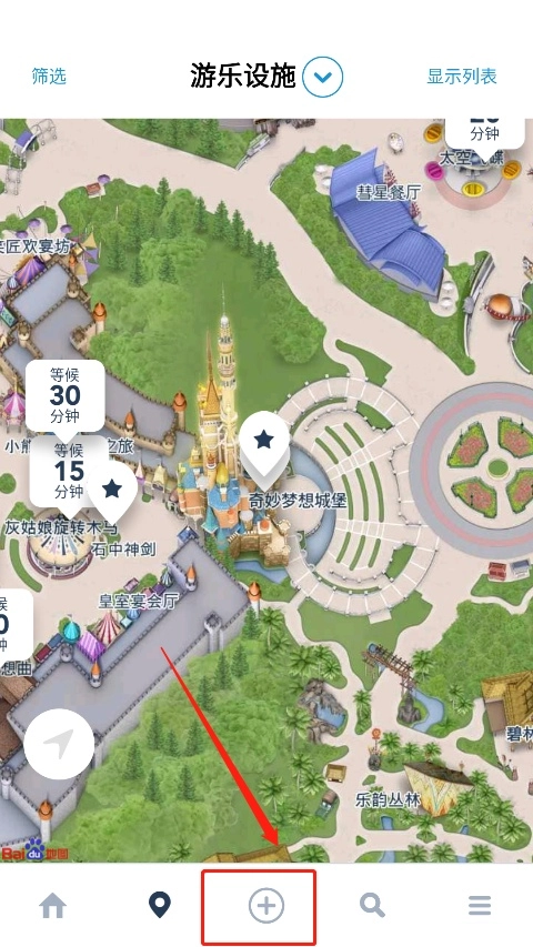 4.浏览乐园地图,定位您附近的景点.餐厅或商店等