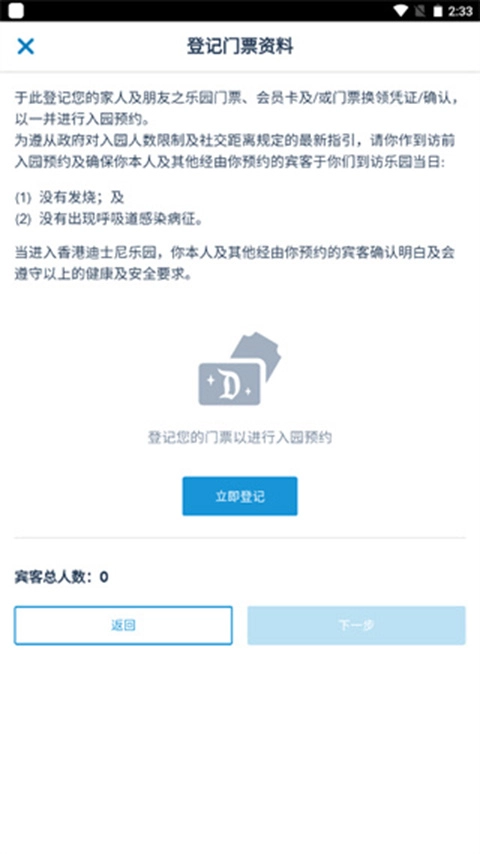7.登记门票资料后点击下一步就可以预约成功了。