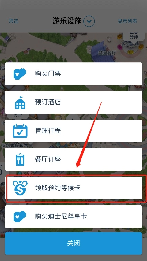 1.领取"迪士尼预约等候卡"