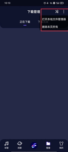 4、【管理】界面展示的均为已下载至本地的音乐,若需删除音乐,可全部选中或有选择地删除音频文件。