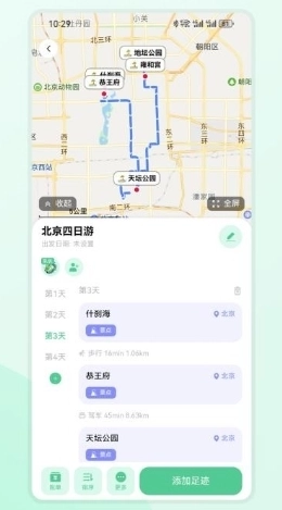 点击添加足迹来将自己的旅行足迹进行在线记录使用。