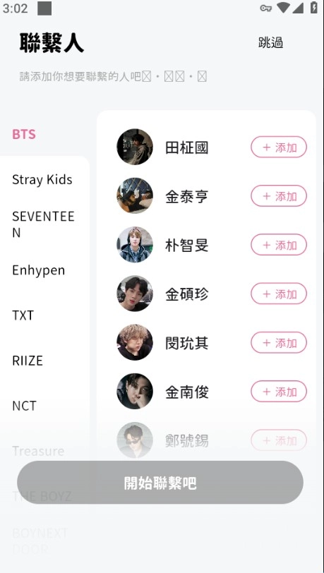 2、接着从列表中挑选心仪的男团成员进行关注。