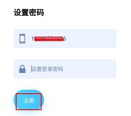 4、在输入验证码和登录密码之后,点击注册按钮就可以注册成功了。