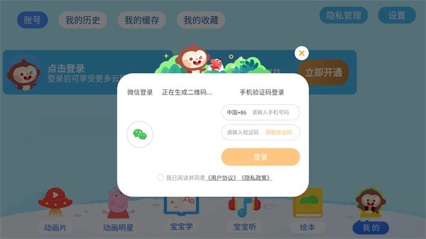2、输入自己的手机号码和验证码就能完成登录。