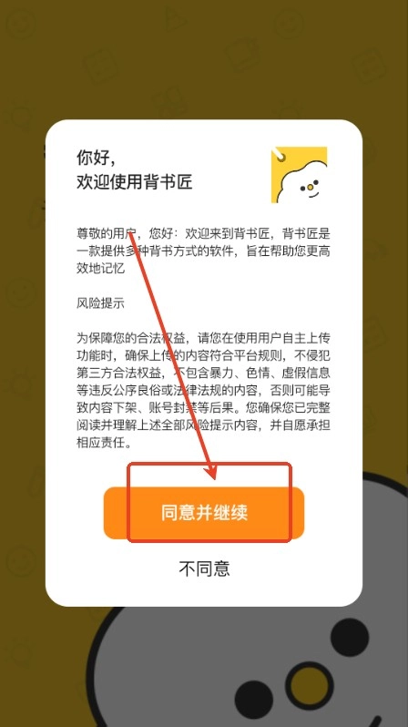 1、打开进入背书匠,同意软件政策;